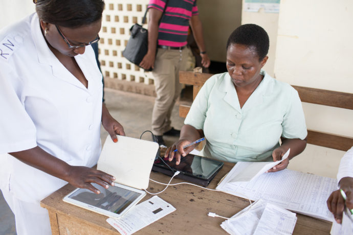 As detailed here, the BID Initiative partnered with the Ministries of Health (MOH) in Tanzania and Zambia to address key challenges in immunisation data collection, quality, and use beginning in 2013. The resulting tablet-based EIR software, which has on- and offline functionality, allows healthcare workers (HCWs) to register children, record vaccinations administered, identify vaccinations due, and generate aggregate facility-level reports that feed into the health management information system (HMIS). In both countries, the intention of the EIR was to replicate and eventually replace the use of paper-based data collection tools.