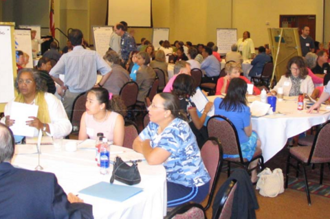 A key strategy for continuing to engage the community was sharing the outcomes from these small-group discussions as part of an effort to build the foundation for framing the deliberations of subsequent sessions. By highlighting the fact that their input would fill a notable gap in the first U.S. Pandemic Influenza Preparedness and Response Plan (which was released in the summer of 2004), organisers were able to entice 101 citizens to volunteer to take part in an all-day public engagement event in Atlanta, Georgia. The participants were a diverse representation of gender, age (adults from 18 to 78), and ethnicity. Fourteen tables of participants were supported by volunteer facilitators as well as technical experts from multiple private and public organisations. A discussion guide structured the deliberations of the day, which began with various presentations and exercises (accompanied by handouts, such as those including essential facts about influenza). Participants then engaged in collaborative discussions to identify and weigh the tradeoffs associated with a national pandemic influenza vaccination programme.