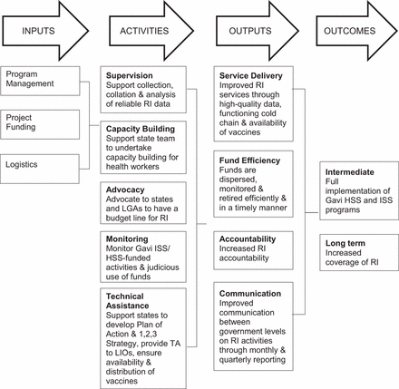As detailed here, since 2002, the RI consultant programme has been jointly funded by Gavi and National Primary Health Care Development Agency (NPHCDA), a parastatal of the Nigerian Federal Ministry of Health (FMoH). The proposal and design process was country driven, and activities were designed by Nigerian stakeholders. In fact, several components of the design distinguish the programme's technical assistance (TA) model: