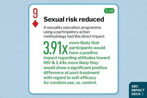 Strategy researched Sexuality education programme using a participatory action methodology to reduce sexual risk behaviours Impact achieved Country of study Colombia Research methodology Cluster RCT Journal Journal paper title and link Effects of a Sexual Risk-Reduction Intervention for Teenagers: A Cluster-Randomized Control Trial "In the short term, the experimental group showed increased knowledge about HIV and other STIs, sexual assertiveness, self-efficacy, greater behavioral intention toward condom use, and more favorable attitudes toward HIV and condom use than the control group. After 6 months, most psychological and health variables also showed a significant positive change." |