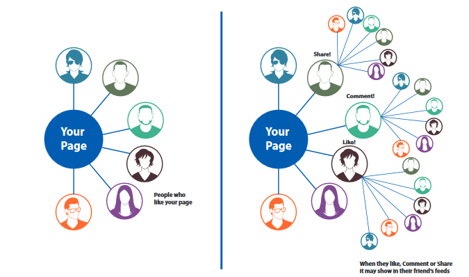 Each step has screenshots, figures, tables, flow charts, and case studies to illustrate how the strategies can be applied in the real world. For example, in the section "Promote Your Facebook Page", screenshots of how a Facebook page is promoted through social media influencers are included as well as photographs of how offline promotion is used to promote the page.