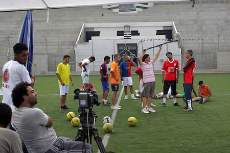 The Team in Palestine is a television series that weaves together elements of drama, sports, and societal issues. It offers a realistic portrayal of what a football (the sport known as "soccer" in the United States) team from Palestine must face on a daily basis. Moments of love and hate clash with ancient social traditions and values; the realities of life in a refugee camp mix with the stresses and demands that university students face. The series is co-produced by the Palestinian non-profit media organisation Ma'an Network and the United States (US)-based Search for Common Ground (SFCG), and has an entirely Palestinian cast and crew of 110 people. Goals include increasing tolerance, cooperation, and national unity - encouraging dialogue instead of violence to address conflicts and differences.